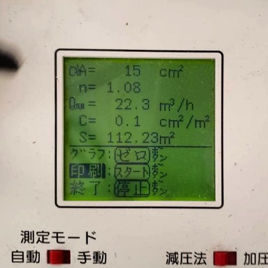 現場気密測定の写真です。