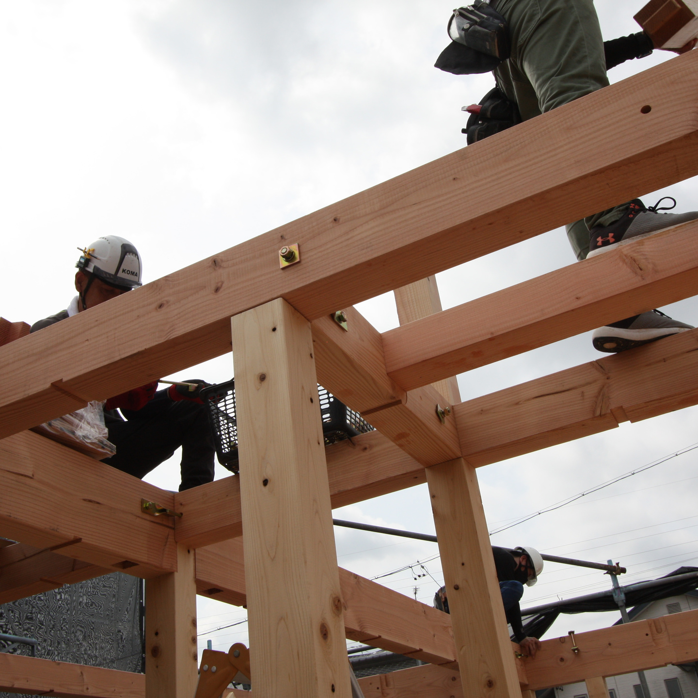 柱から横架材(梁、桁)、屋根仕舞いまでを組み上げていきます。
