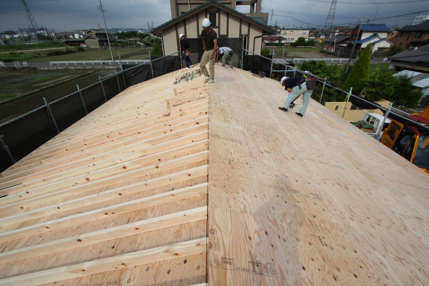 ルーフィングを葺いて屋根の雨仕舞ができました。