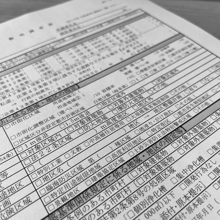 調査には、関係行政庁(役所、法務局等)、確認申請審査機関、地盤調査、現地調査(地形、境界杭、隣地建物、窓、日当たり、眺望、風向き、臭気、騒音、振動、交通量、ガス、下水、電気、水路、道路、電線、高圧線、工事を含めて支障になりそうなものがないか)があります。