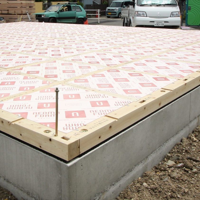 床断熱材を設置。(ネオマフォーム 45mm R2.3)